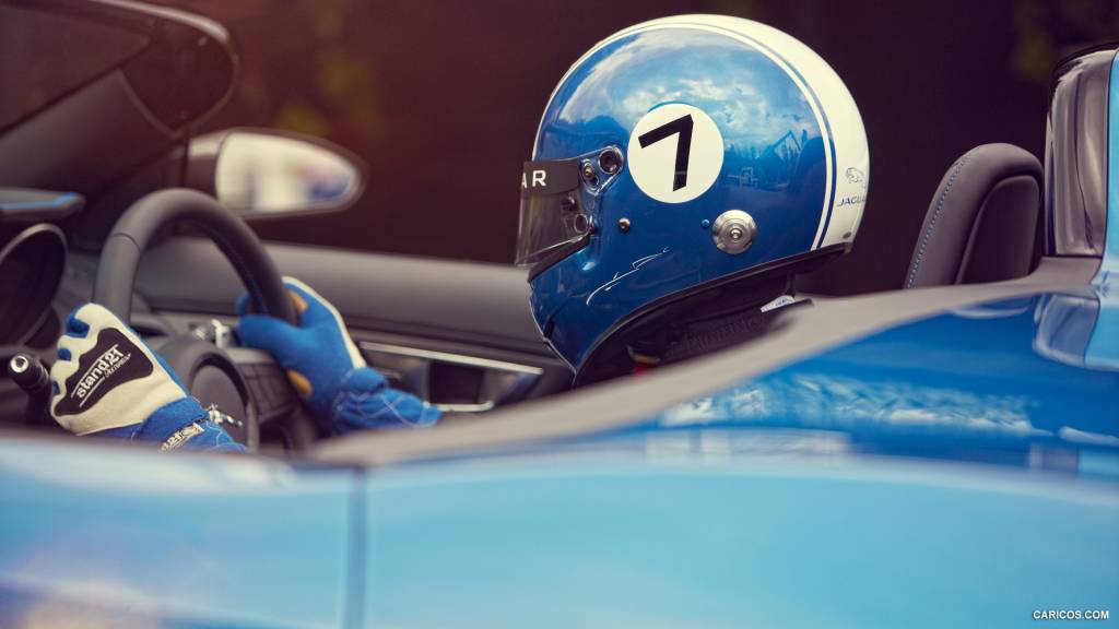 Jaguar Project 7 Helmet made especially for the Jaguar Project 7. Metallic Blue with racing stripe and number 7 logo.